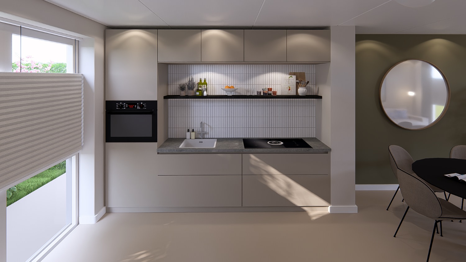 Onze interieurstylisten hebben de hoekwoning visueel ingericht. Zo kun je zien wat er mogelijk is, maar samen kijken we natuurlijk naar wat écht bij jou past.