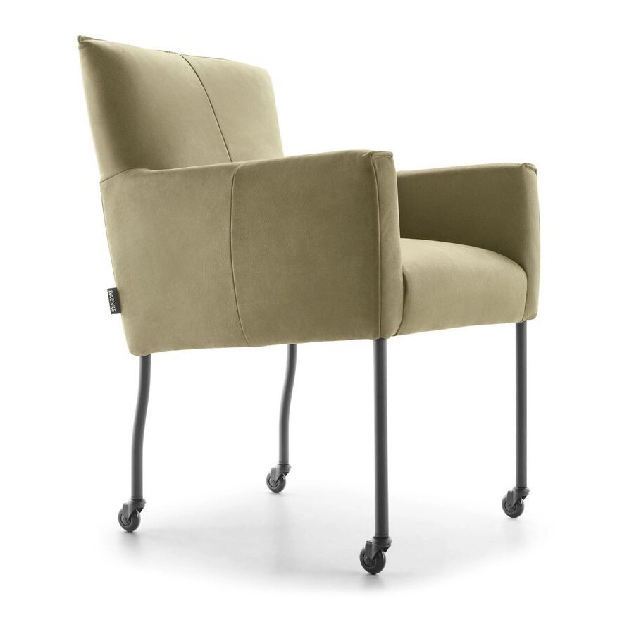 Ontdek de Via Maggio armstoelErvaar het uitstekende zitcomfort van de armstoel Via Maggio en neem plaats op deze elegante stoel. Het unieke design van de oogstrelende armstoel Via Maggio maakt het je mogelijk om bijzonder te wonen. Het prachtige karakter van de Via Maggio armstoel biedt je een optimaal zitcomfort met een tijdloze vormgeving. Deze stoelen hebben een no-nonsense uitstraling en zijn van een ongekende kwaliteit, precies wat je verwacht van een stoel van Baenks. De comfortabele volle kuip en de strakke zwarte metalen poten op zwarte skatewieltjes geven deze armstoel een rijke uitstraling. Bekijk hieronder de mogelijkhedenPrachtige armstoel Via Maggio: kleur en stofferingDe stoelen Via Maggio zijn prachtexemplaren en zullen een eyecatcher in je woonkamer zijn. Je kunt zelf je favoriete stof of leder uitkiezen waardoor je deze armstoel Via Maggio extra persoonlijk maakt. Tevens kun je kiezen uit oneindig veel kleuren, dus niets weerhoudt je meer van de Via Maggio stoel. Omdat de stof- en ledercollectie enorm groot is, kun je het beste naar één van onze showrooms komen, waar we de mogelijkheden en keuzes met je kunnen bespreken. Op die manier kunnen we je voorzien van een goed interieuradvies. Heerlijk zitcomfort & Nederlands vakmanschapNaast de armstoel is het model Via Maggio te verkrijgen als een armstoel large, een eetstoel of eetstoel large en een eetbank in diverse royale breedtematen. Het zit- en ruggedeelte is uitgevoerd met kwalitatief uitstekend koudschuim gecombineerd met polyether-schuim. Deze combinatie van hoogwaardige materialen zorgt ervoor dat Via Maggio zich kan meten met de beste merken. Kortom: een comfortabele stoel, heerlijk om lange avonden aan de eettafel door te brengen en te genieten! Baenks levert alle meubelen met standaard 7 jaar garantie. Je bent bij Baenks dus verzekerd van 7 jaar zorgeloos wonen. Onze deskundige interieuradviseurs kunnen je hierover meer informatie verstrekken. Op deze website staat ook meer over deze garantie vermeld. Maar of je nu je bestelling via internet plaatst of dat je toch liever 1 van onze winkels bezoekt, je mag er altijd vanuit gaan dat je bestelling met de grootste zorg wordt behandeld.