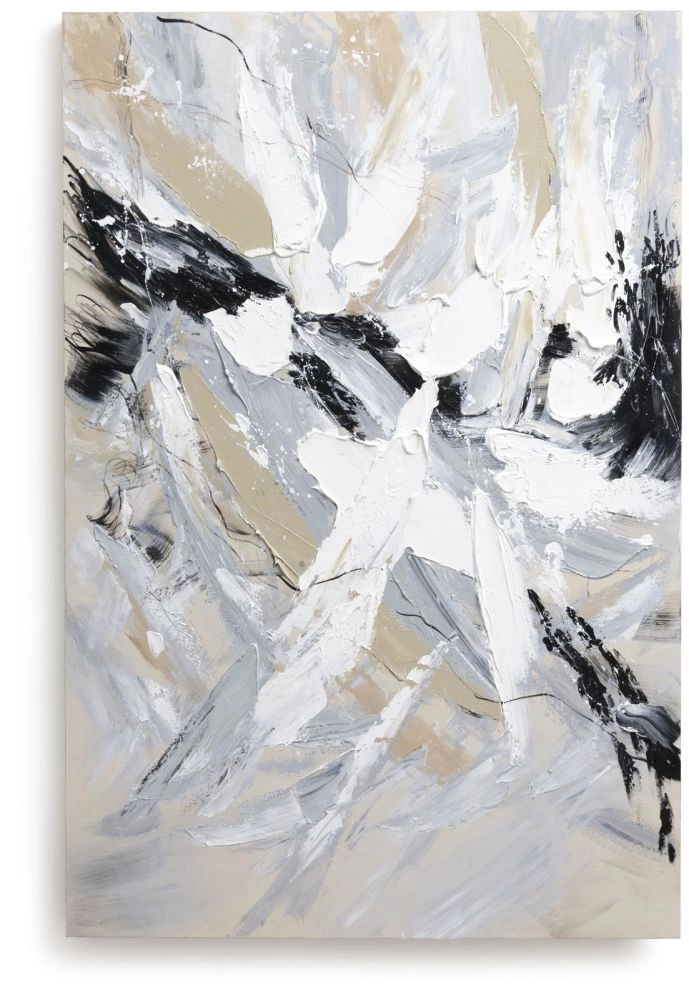 Bij dit flinke schilderij Abstract Power van maar liefst 120 x 180 cm spat de energie van het doek af. Het schilderij is met de hand geschilderd op canvas, en door de dikke verflagen krijgt het een prachtig 3D-effect. De kleuren die zijn gebruikt zijn wit, zwart, grijs en beige. Het schilderij bestaat uit 30% hout (frame), 30% stof (doek) en 40% verf en er zit geen lijst omheen. Ontdek ook de andere schilderijen in de collectie van COCOmaison!