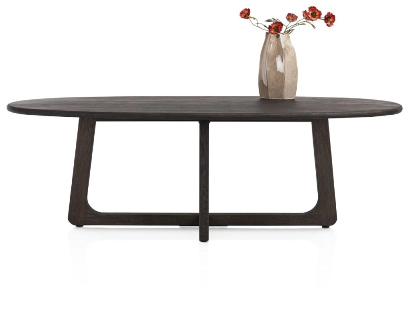 Almora is een moderne maar tegelijk vintage-ogende eetkamertafel. Het is de gefineerde designpoot die de Almora haar modernistisch karakter geeft. De tafel zou vlekkeloos passen in een art nouveau-interieur, maar ze staat evenzeer perfect in een eigentijdse woonkamer. Tijdloos noem je zoiets. De Almora-tafel is verkrijgbaar in drie maten. Dit is de versie met een tafelblad dat 240 cm lang is, 120 cm breed en 77 cm hoog. Maar ze is ook verkrijgbaar met een blad van 210 en 270 cm. Dat tafelblad is massief eiken? De tafel die je hier heeft de kleur basalt. Ze bestaat ook in de kleur natural sand.