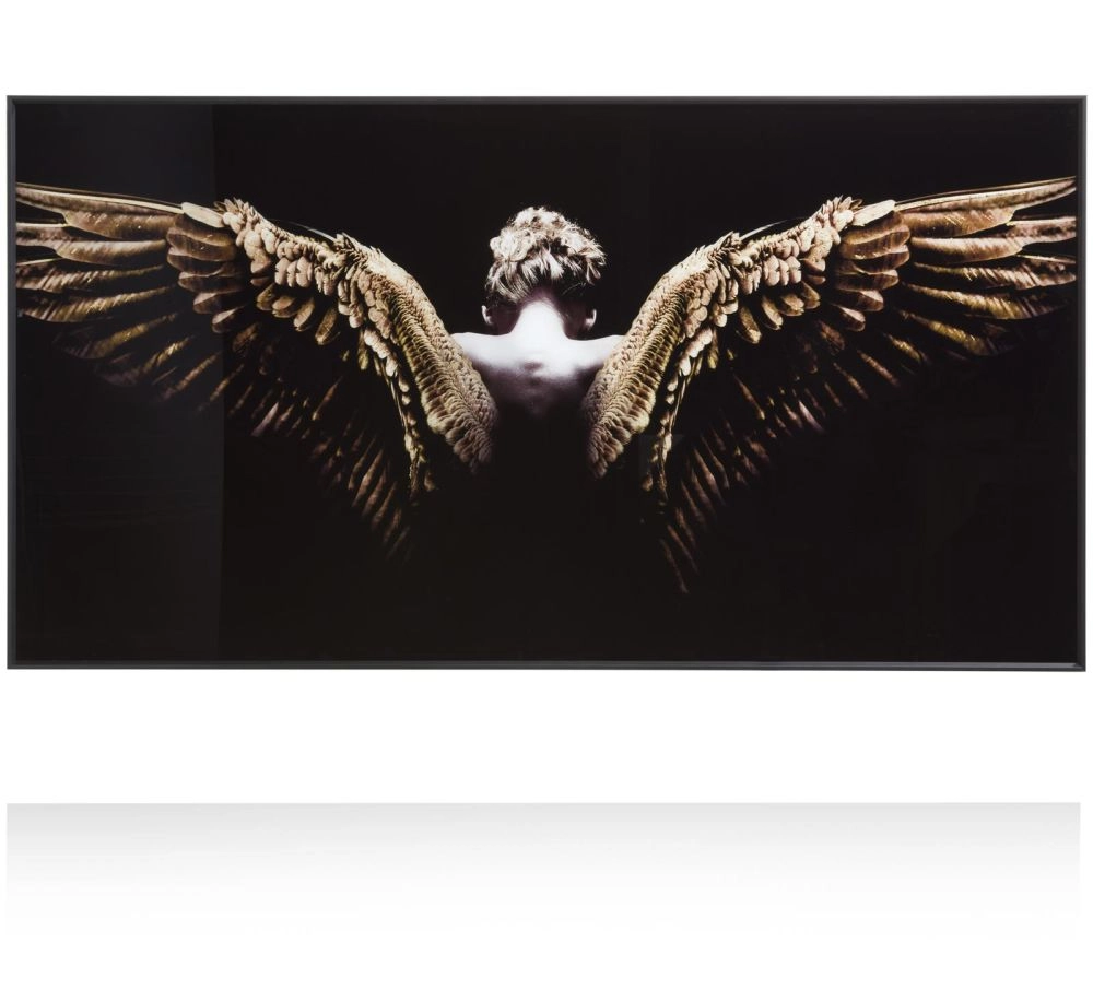 Een mooi schilderij of wandobject aan de muur geeft direct veel sfeer aan je interieur. Dit prachtige fotoschilderij ANGEL WINGS van COCOmaison is een echte parel met heel veel details. Het schilderij van een vrouw met engelenvleugels op een dramatische zwarte achtergrond is geprint op glas en wordt geleverd inclusief een zwarte lijst. Dit bijzondere schilderij heeft een afmeting van 150 x 80 cm en is dus een échte eyecatcher in de woonkamer, hal of slaapkamer.