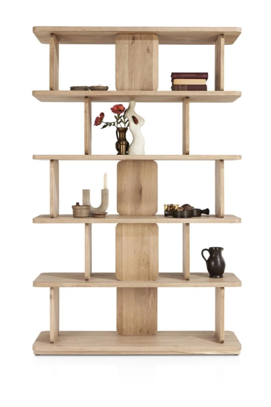 De Scandinavische woonstijl is immens populair, en dat komt perfect tot uiting in de Azulo- en Azulaar-collecties van Henders & Hazel. Deze collecties combineren alle essentiële kenmerken van deze stijl. De meubels zijn vervaardigd uit natuurlijk eikenfineer met een lichte laklaag, terwijl de tafelbladen van massief eikenhout zijn. Het ontwerp is zo puur mogelijk, zonder toevoeging van andere materialen, lijsten of handgrepen. De deuren en lades zijn verfijnd afgeschuind en standaard uitgerust met een soft-closing systeem.Binnen de Azulaar-collectie vind je drie open kasten die zowel tegen een muur als vrij in de ruimte kunnen worden geplaatst. Hierdoor kunnen ze niet alleen als boekenkast dienen, maar ook als sidetable of roomdivider. Dit specifieke model beschikt over 20 niches en heeft een hoogte van 187 cm, een breedte van 120 cm en een diepte van 35 cm.