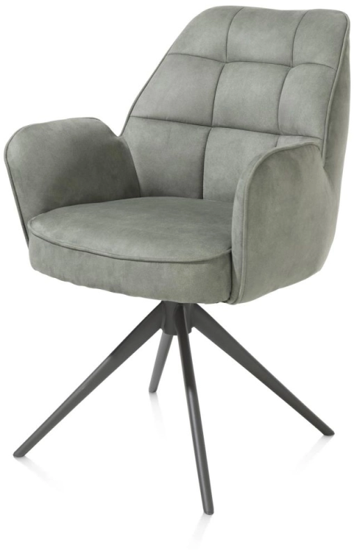 Deze armstoel Bell heeft een uniek design met ruitvormige inpullingen in de rug en een speciaal zitcomfort met pocketvering. Het fijne frame heeft een grafietkleur en is bovendien draaibaar. Deze stoelen zijn bekleed in de fijne microvezelstof Calabria. Er is echter ook een versie die in een combinatie van stof Calabria en stof Vada is uitgevoerd! De stoel is verkrijgbaar in 3 verschillende kleuren - kiezel, mosgroen en olijfkleurig. Dit is de uitvoering in olijf. Ben je eerder fan van een gewone eetkamerstoel? Die vind je ook in deze collectie!