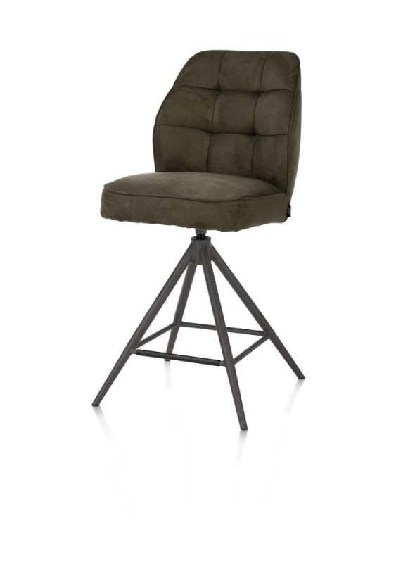 De barkruk Bell combineert stijl en comfort in een uniek ontwerp. De rugleuning is voorzien van een verfijnde ruitvormige bekleding, terwijl de zitting met pocketveren zorgt voor een aangename zitervaring. Het slanke, draaibare frame is uitgevoerd in een elegante grafietkleur. De barkruk is bekleed met de zachte microvezelstof Calabria en verkrijgbaar in drie kleuren: kiezel, mosgroen (afgebeeld) en olijf. De zithoogte bedraagt 68 cm, de totale hoogte is 102 cm. De breedte van de stoel is 49 cm en de diepte 62 cm.