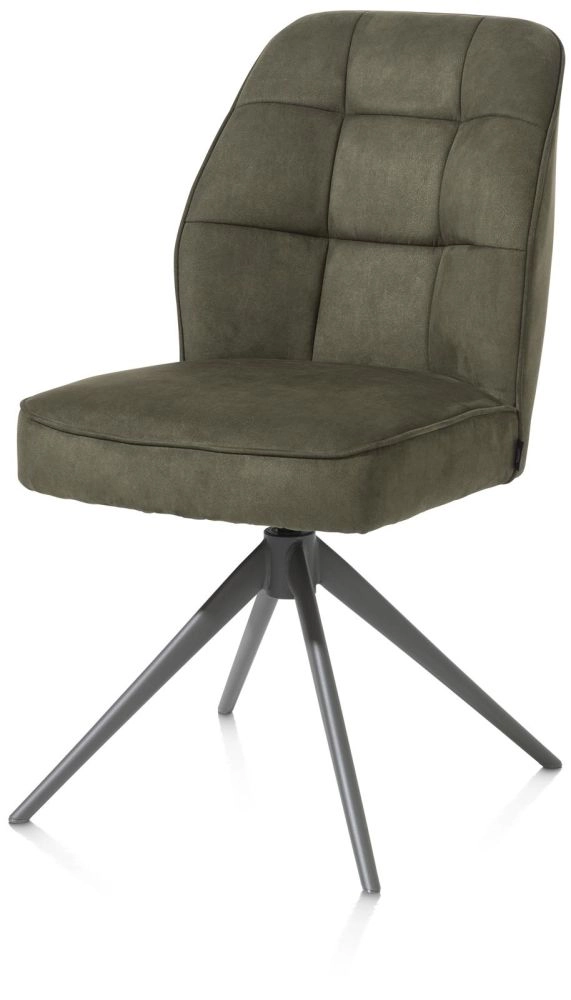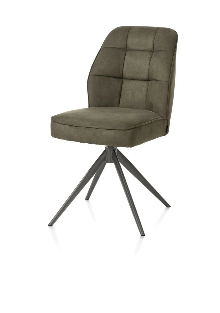 Deze eetkamerstoel Bell heeft een uniek design met ruitvormige inpullingen in de rug en een speciaal zitcomfort met pocketvering. Het fijne frame heeft een grafietkleur en is bovendien draaibaar. Deze stoelen zijn bekleed in de fijne microvezelstof Calabria. Er is echter ook een versie die in een combinatie van stof Calabria en stof Vada is uitgevoerd! De stoel is verkrijgbaar in 3 verschillende kleuren - kiezel, mosgroen en olijfkleurig. Dit is de uitvoering in mosgroen. Ben je eerder fan van een armstoel? Die vind je ook in deze collectie!