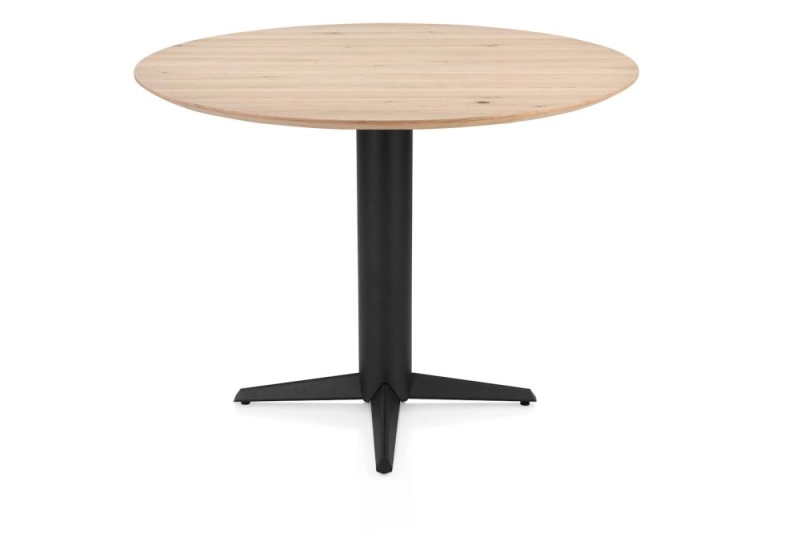 Caletta, bartafel rond 120 cm. - eiken blad - centrale teenpoot zwart - natural