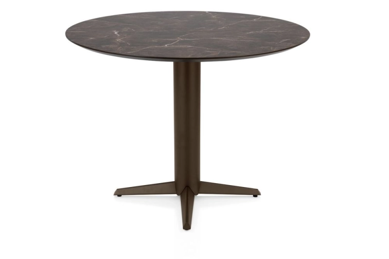 Caletta, bartafel rond 120 cm. - HPL Primo Laminato blad - centrale teenpoot steelbrown - marble brown