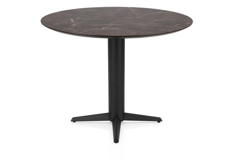 Caletta, bartafel rond 120 cm. - HPL Primo Laminato blad - centrale teenpoot zwart - marble brown