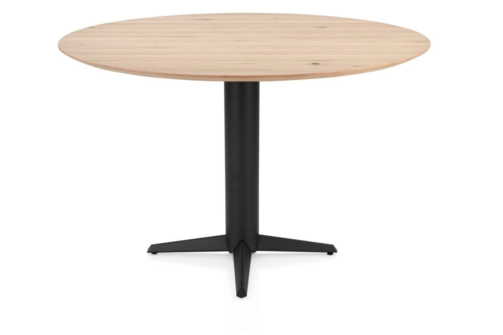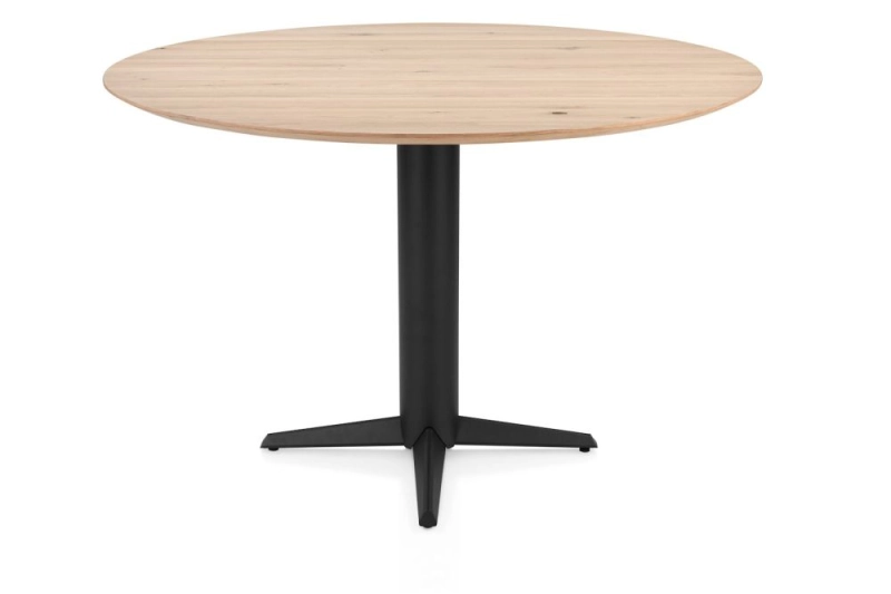 Caletta, bartafel rond 150 cm. - eiken blad - centrale teenpoot zwart - natural