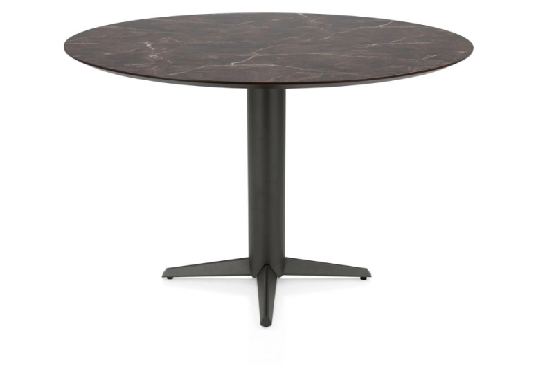 Caletta, bartafel rond 150 cm. - HPL Primo Laminato blad - centrale teenpoot grafiet - marble brown