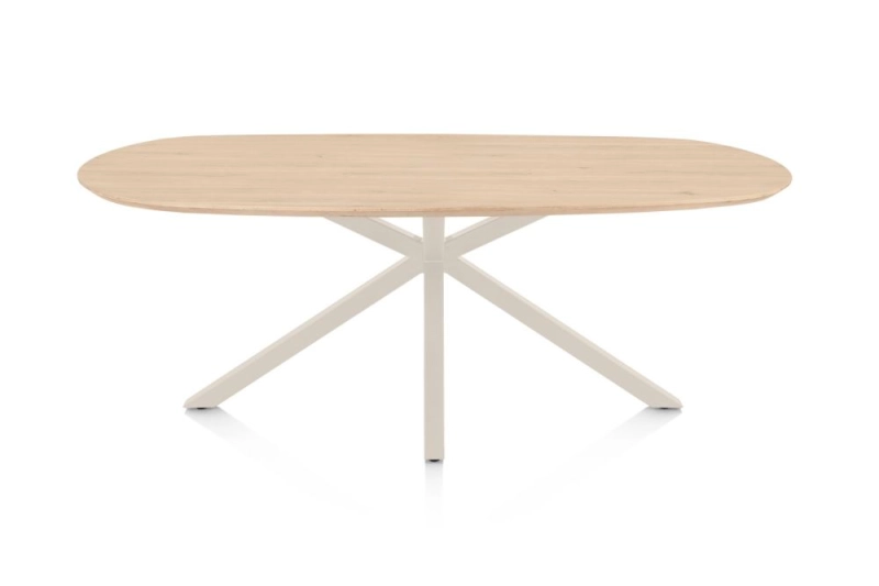 Caletta, eetkamertafel ovaal 210 x 100 cm. - eiken blad - centrale kruispoot crème - natural