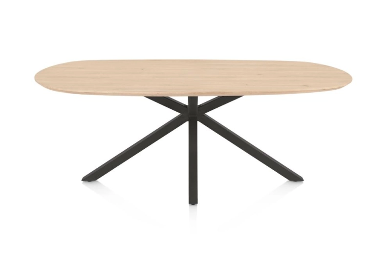 Caletta, eetkamertafel ovaal 210 x 100 cm. - eiken blad - centrale kruispoot grafiet - natural