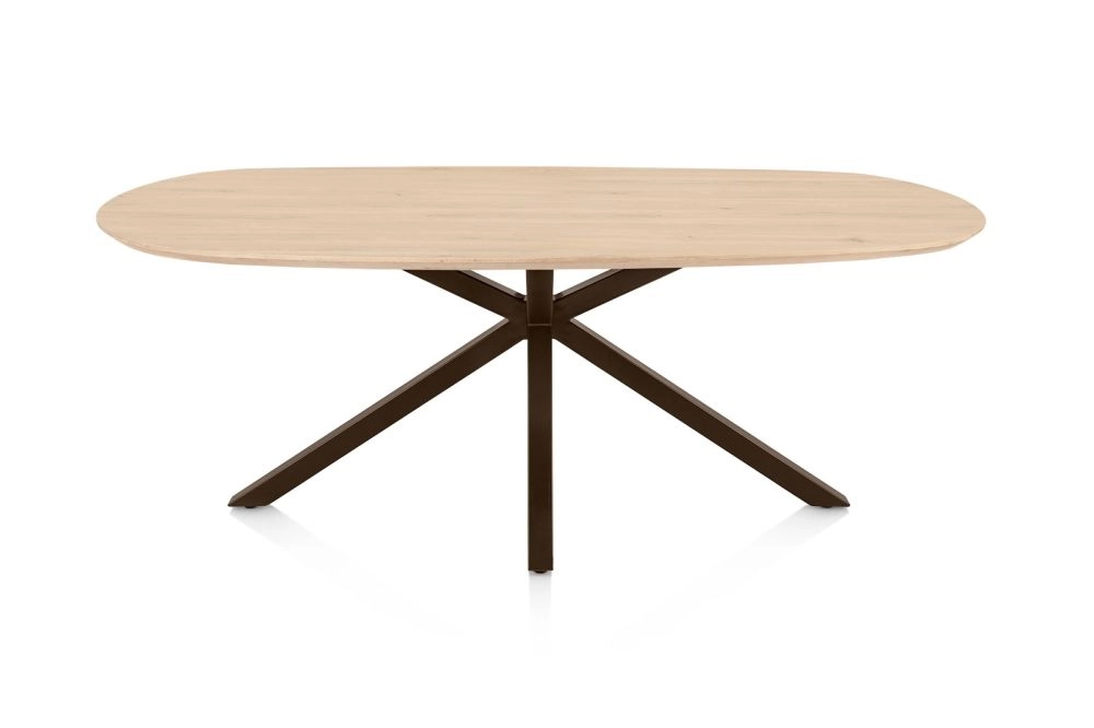 Caletta, eetkamertafel ovaal 210 x 100 cm. - eiken blad - centrale kruispoot steelbrown - natural