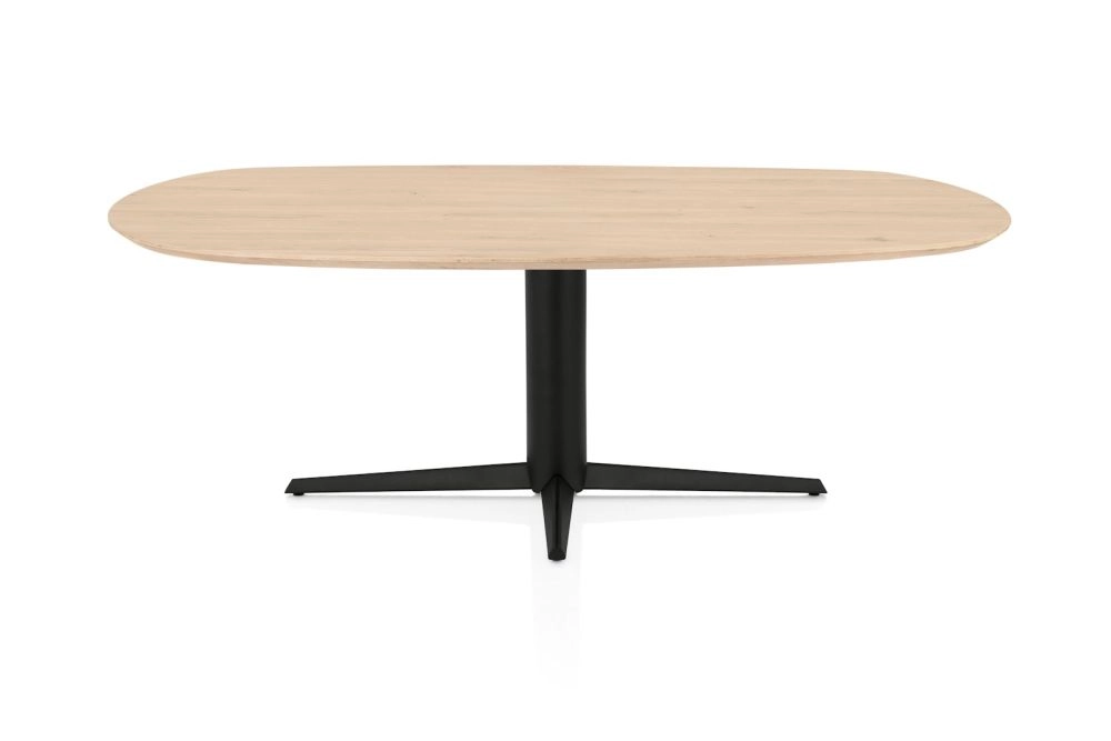 Caletta, Eetkamertafel ovaal 210 x 100 cm. - eiken blad - centrale teenpoot rough off black - natural