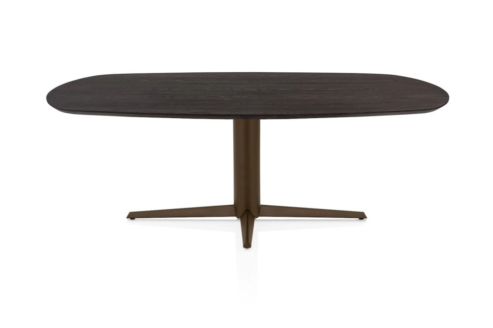 Caletta, eetkamertafel ovaal 210 x 100 cm. - eiken blad - centrale teenpoot steelbrown - Basalt