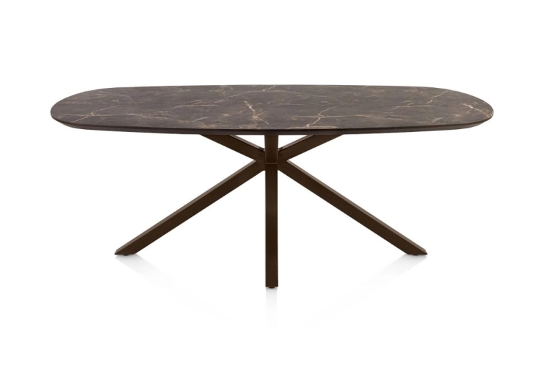 Caletta, eetkamertafel ovaal 210 x 100 cm. - HPL Primo Laminato blad - centrale kruispoot steelbrown - marble brown