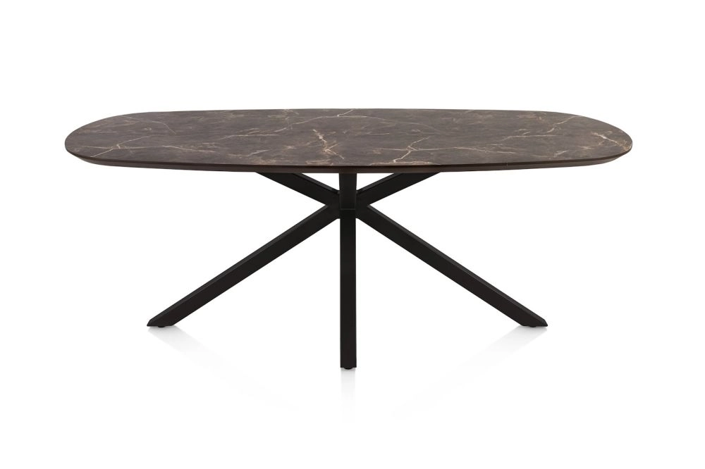 Caletta, eetkamertafel ovaal 210 x 100 cm. - HPL Primo Laminato blad - centrale kruispoot zwart - marble brown
