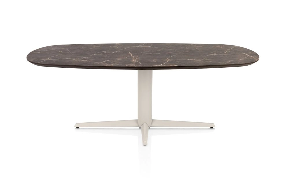 Caletta, eetkamertafel ovaal 210 x 100 cm. - HPL Primo Laminato blad - centrale teenpoot crème - marble brown