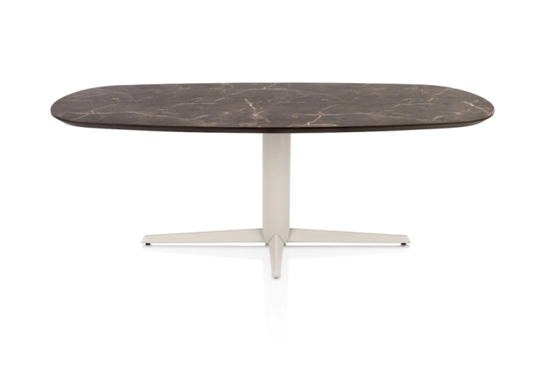 Caletta, Eetkamertafel ovaal 210 x 100 cm. - hpl primo laminato blad - centrale teenpoot crème - middenbruin