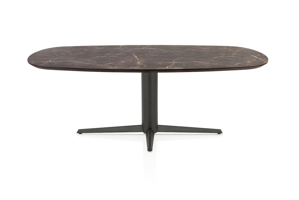Caletta, eetkamertafel ovaal 210 x 100 cm. - HPL Primo Laminato blad - centrale teenpoot grafiet - marble brown