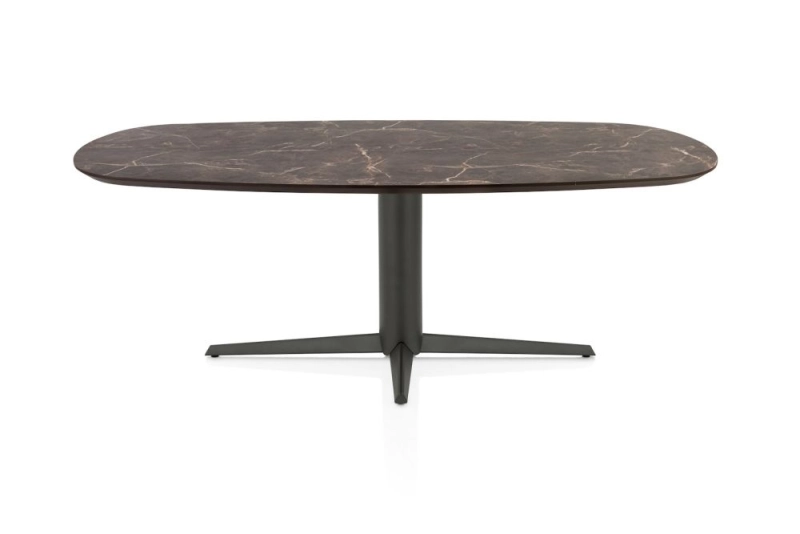 Caletta, Eetkamertafel ovaal 210 x 100 cm. - hpl primo laminato blad - centrale teenpoot graphiet - middenbruin