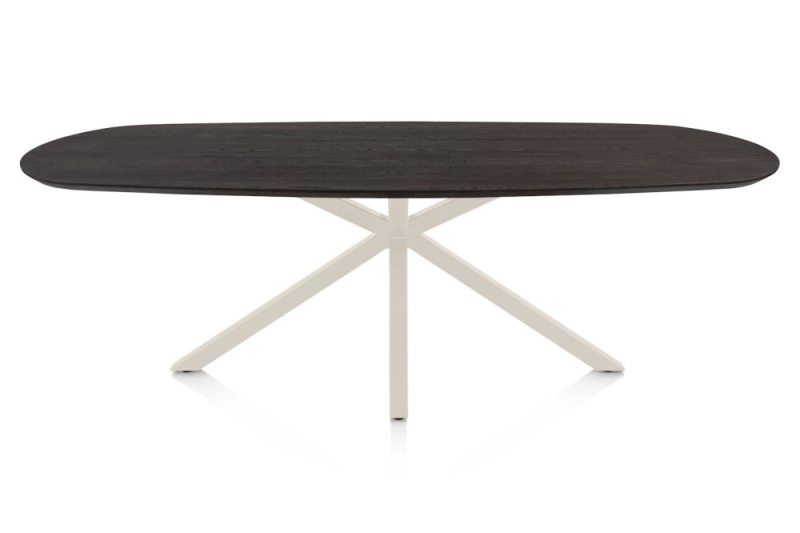 Caletta, eetkamertafel ovaal 240 x 105 cm. - eiken blad - centrale kruispoot crème - Basalt