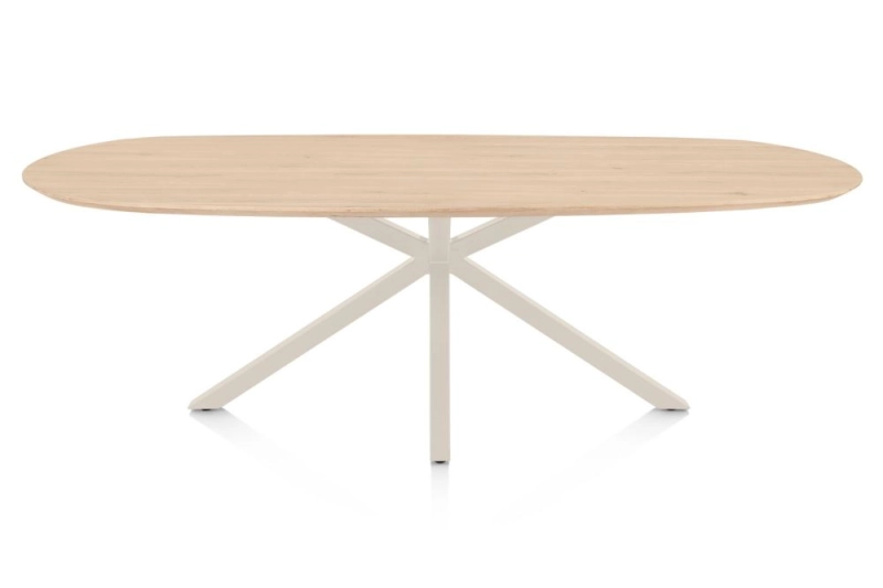 Caletta, eetkamertafel ovaal 240 x 105 cm. - eiken blad - centrale kruispoot crème - natural