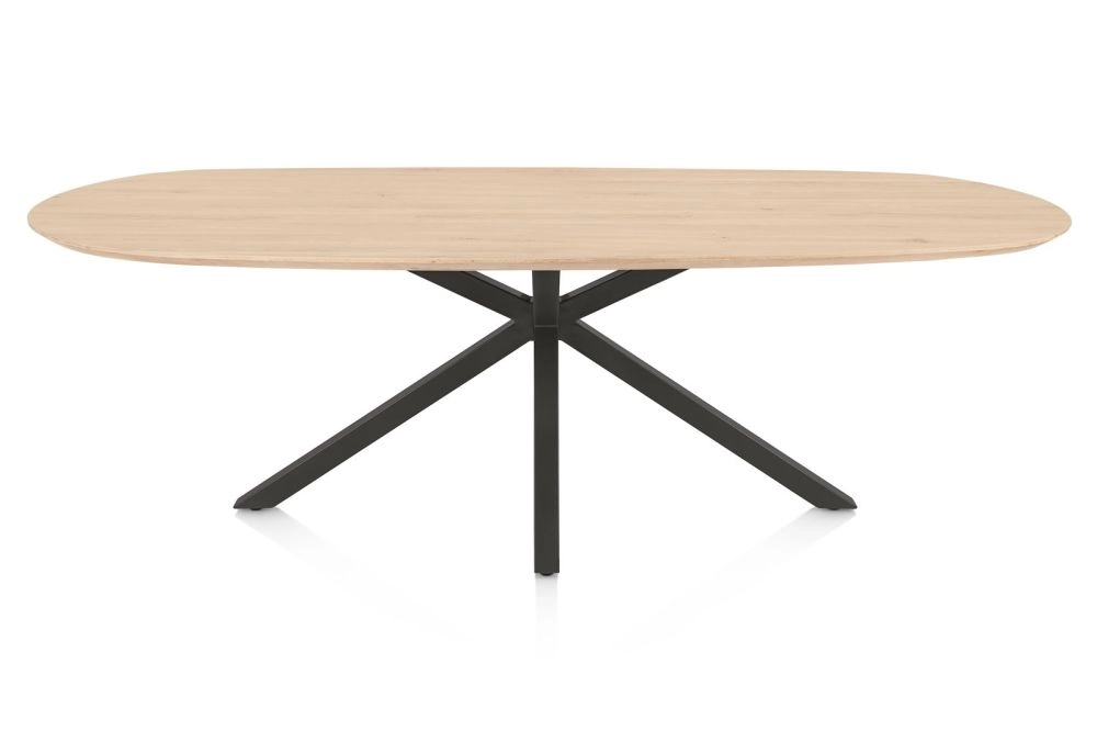 Caletta, Eetkamertafel ovaal 240 x 105 cm. - eiken blad - centrale kruispoot graphiet - natural