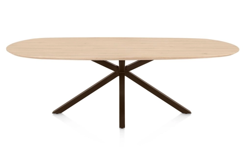 Caletta, eetkamertafel ovaal 240 x 105 cm. - eiken blad - centrale kruispoot steelbrown - natural