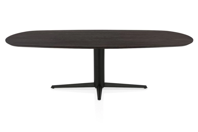 Caletta, eetkamertafel ovaal 240 x 105 cm. - eiken blad - centrale teenpoot zwart - Basalt
