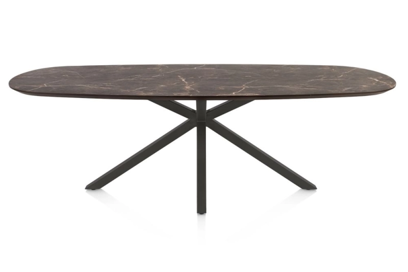 Caletta, eetkamertafel ovaal 240 x 105 cm. - HPL Primo Laminato blad - centrale kruispoot grafiet - marble brown