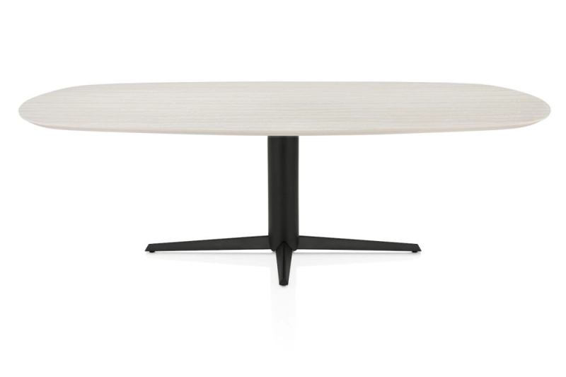 Caletta, eetkamertafel ovaal 240 x 105 cm. - HPL Primo Laminato blad - centrale teenpoot zwart - Travertin