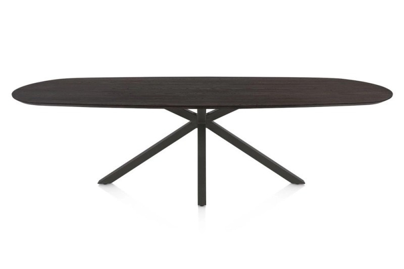 Caletta, eetkamertafel ovaal 270 x 110 cm. - eiken blad - centrale kruispoot grafiet - Basalt