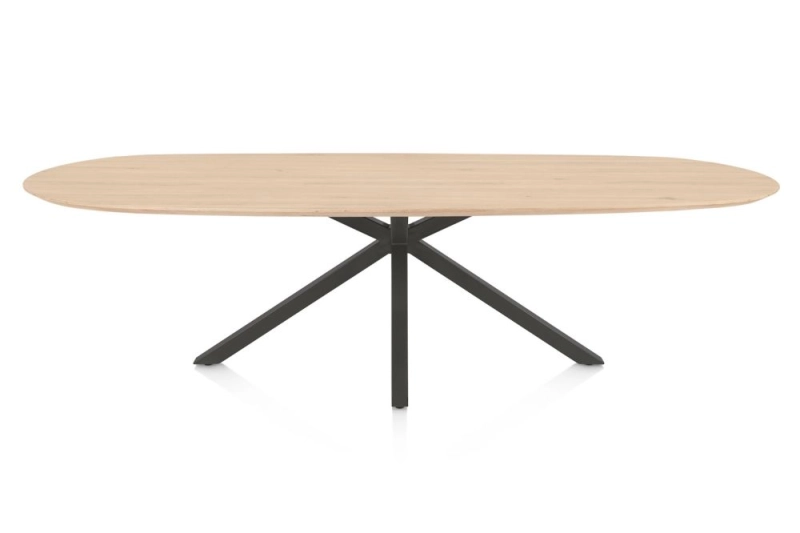Caletta, eetkamertafel ovaal 270 x 110 cm. - eiken blad - centrale kruispoot grafiet - natural