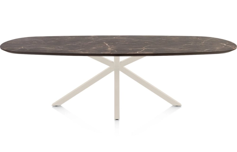 Caletta, eetkamertafel ovaal 270 x 110 cm. - HPL Primo Laminato blad - centrale kruispoot crème - marble brown