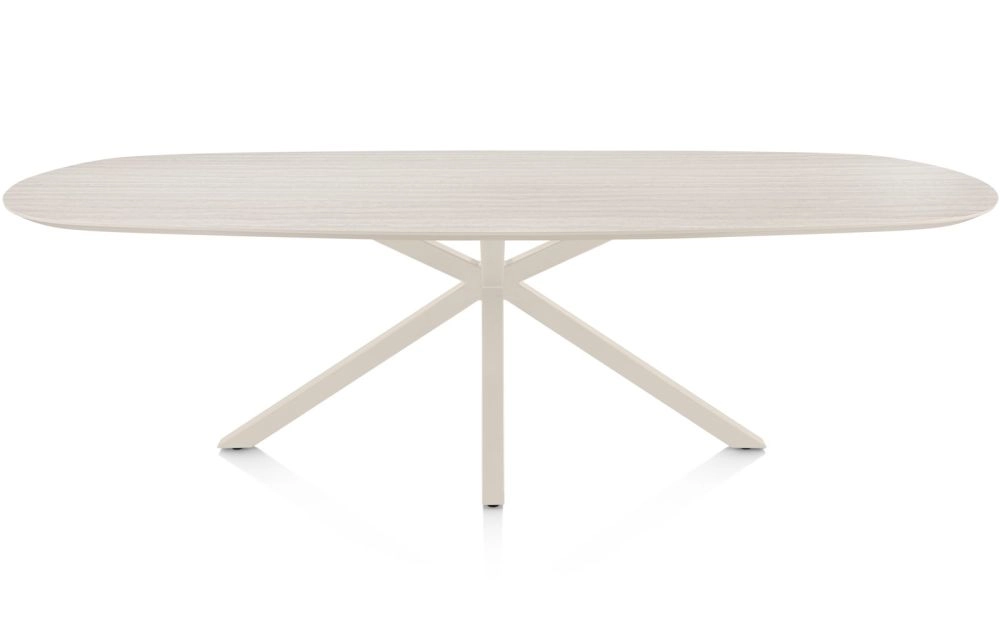 Caletta, eetkamertafel ovaal 270 x 110 cm. - HPL Primo Laminato blad - centrale kruispoot crème - Travertin