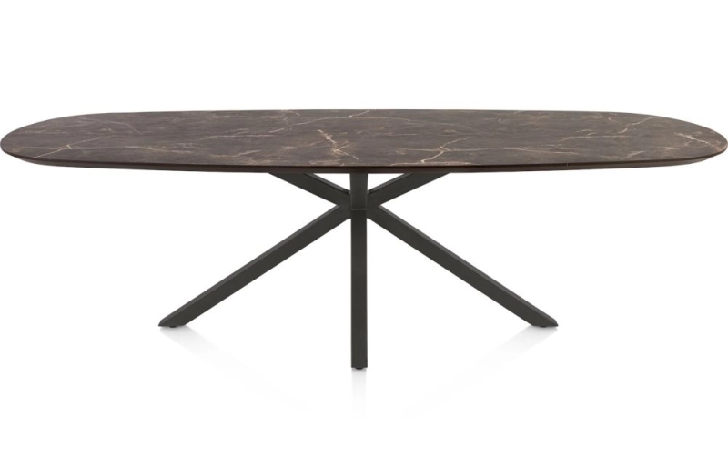 Caletta, eetkamertafel ovaal 270 x 110 cm. - HPL Primo Laminato blad - centrale kruispoot grafiet - marble brown