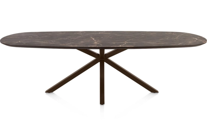 Caletta, Eetkamertafel ovaal 270 x 110 cm. - hpl primo laminato blad - centrale kruispoot steelbrown - middenbruin