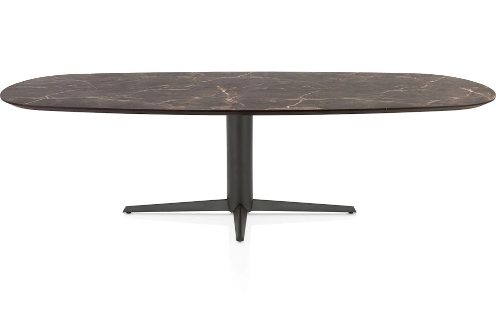 Caletta, eetkamertafel ovaal 270 x 110 cm. - HPL Primo Laminato blad - centrale teenpoot grafiet - marble brown