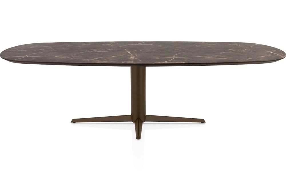 Caletta, eetkamertafel ovaal 270 x 110 cm. - HPL Primo Laminato blad - centrale teenpoot steelbrown - marble brown