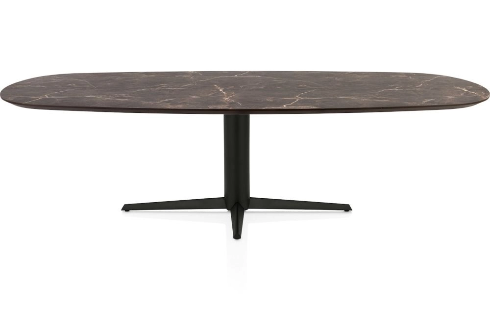 Caletta, eetkamertafel ovaal 270 x 110 cm. - HPL Primo Laminato blad - centrale teenpoot zwart - marble brown