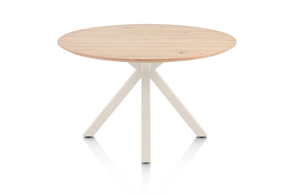 Caletta, eetkamertafel rond 120 cm. - eiken blad - centrale kruispoot crème - natural