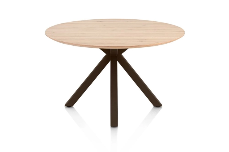 Caletta, eetkamertafel rond 120 cm. - eiken blad - centrale kruispoot steelbrown - natural