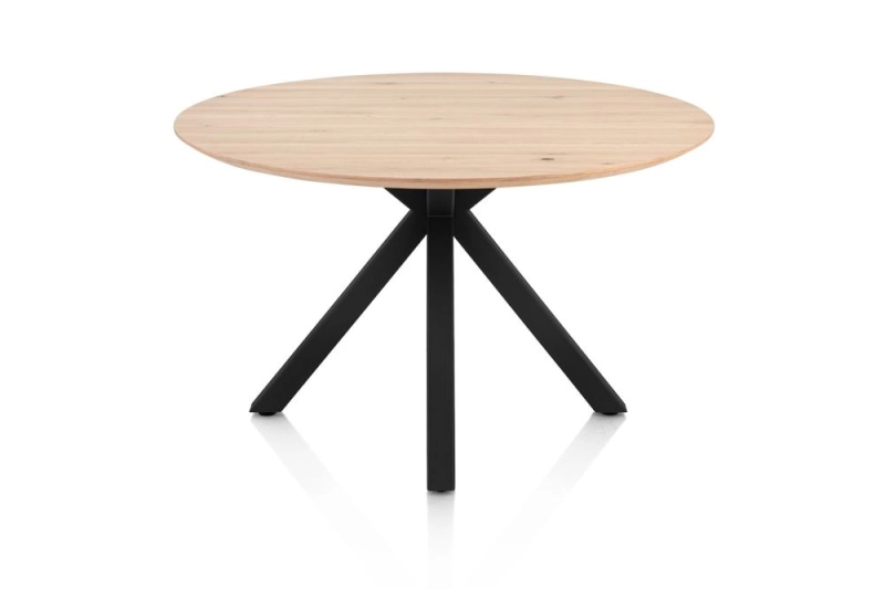 Caletta, eetkamertafel rond 120 cm. - eiken blad - centrale kruispoot zwart - natural