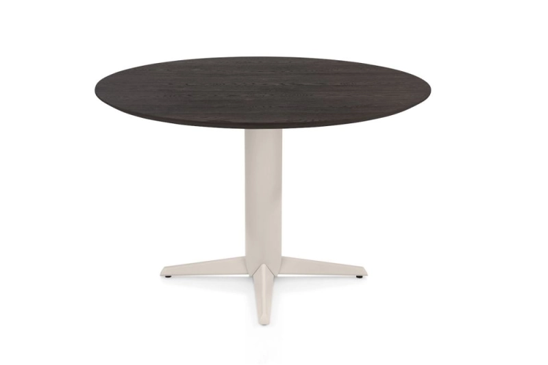 Caletta, eetkamertafel rond 120 cm. - eiken blad - centrale teenpoot crème - Basalt