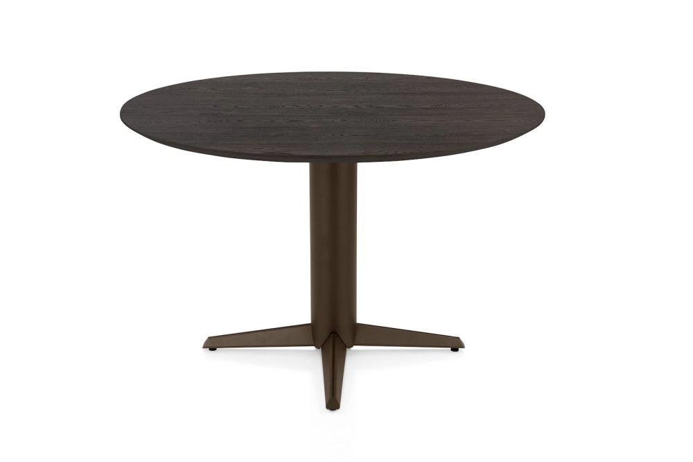Caletta, eetkamertafel rond 120 cm. - eiken blad - centrale teenpoot steelbrown - Basalt