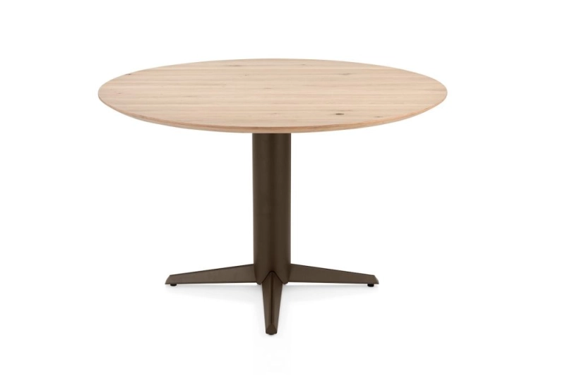 Caletta, eetkamertafel rond 120 cm. - eiken blad - centrale teenpoot steelbrown - natural