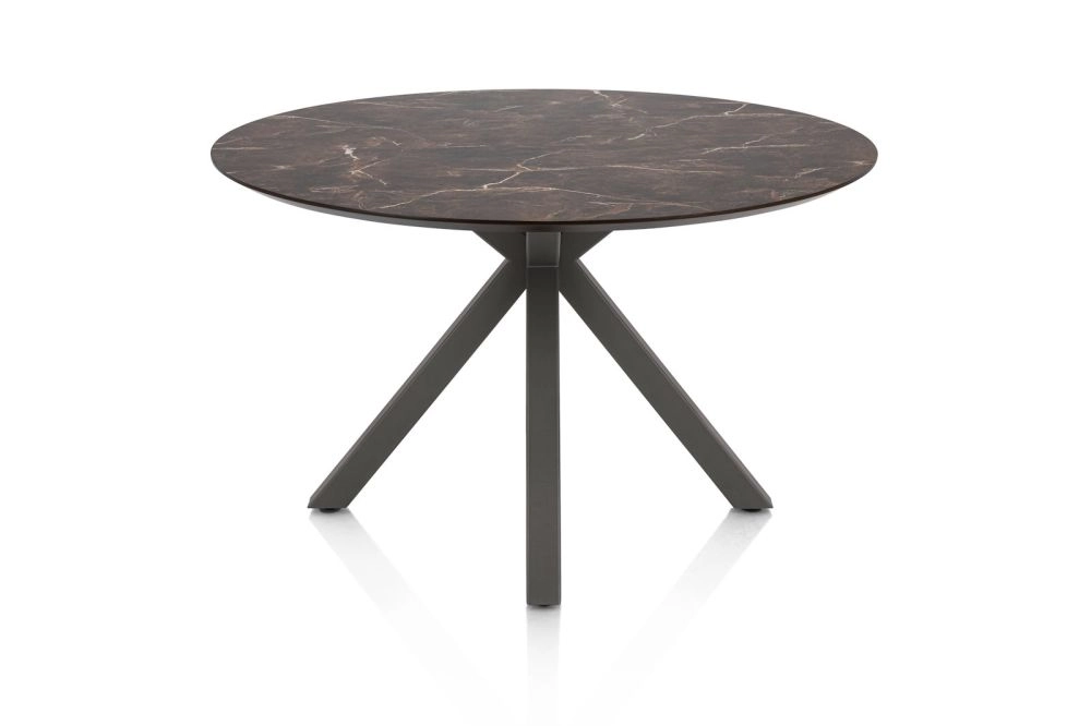 Caletta, eetkamertafel rond 120 cm. - HPL Primo Laminato blad - centrale kruispoot grafiet - marble brown