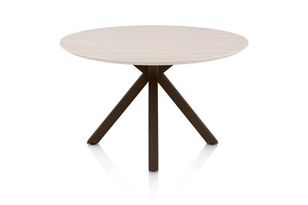 Caletta, Eetkamertafel rond 120 cm. - hpl primo laminato blad - centrale kruispoot steelbrown - Travertin