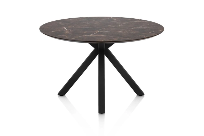 Caletta, eetkamertafel rond 120 cm. - HPL Primo Laminato blad - centrale kruispoot zwart - marble brown